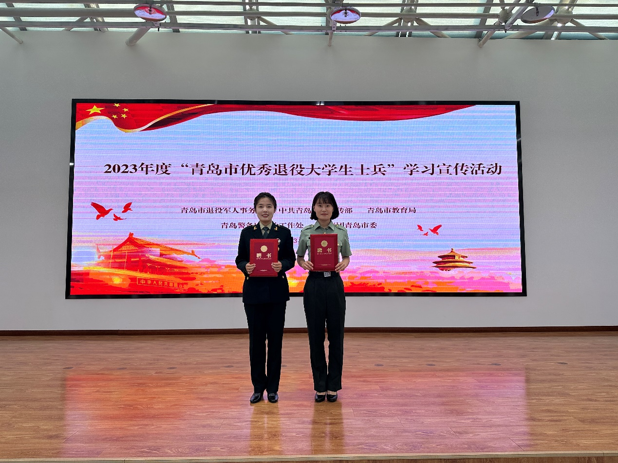 本次学习宣传评选活动由市退役军人局、市委宣传部、市教育局、青岛警备区政治工作处、共青团青岛市委联合开展,20所在青高校推荐的92名退役大学生士兵参与初审,40名退役大学生士兵进入复审环节。经学校武装部评选推荐,青岛市各相关部门初审,孙小涵、翟学岩进入复审环节,并取得优异成绩。