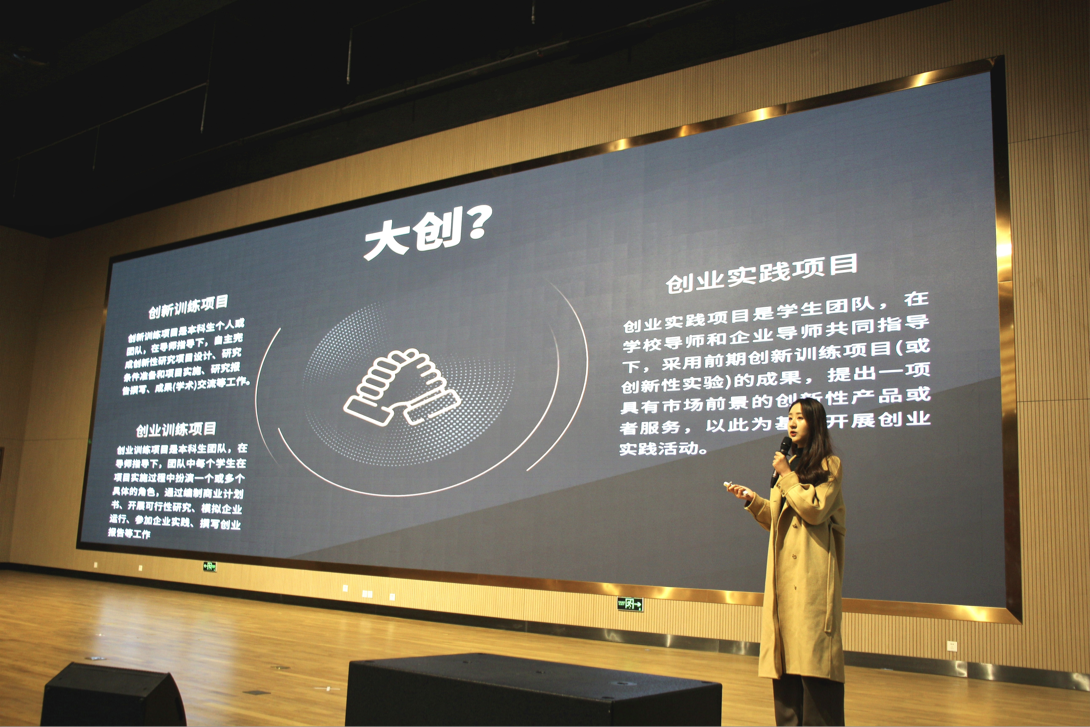 12月18日,太阳成集团tyc234cc于平度校区大学生创业中心报告厅举办“青春正当时,创享新未来”创新创业指导交流会,邀请学院省级创新立项团队成员孙君丽、外国语学院、动漫与传媒学院挑战杯获奖团队负责人孙梦迪、闫佳慧为学生作创业创业指导。交流会由学院辅导员邱文超主持,平度校区全体学生参加。