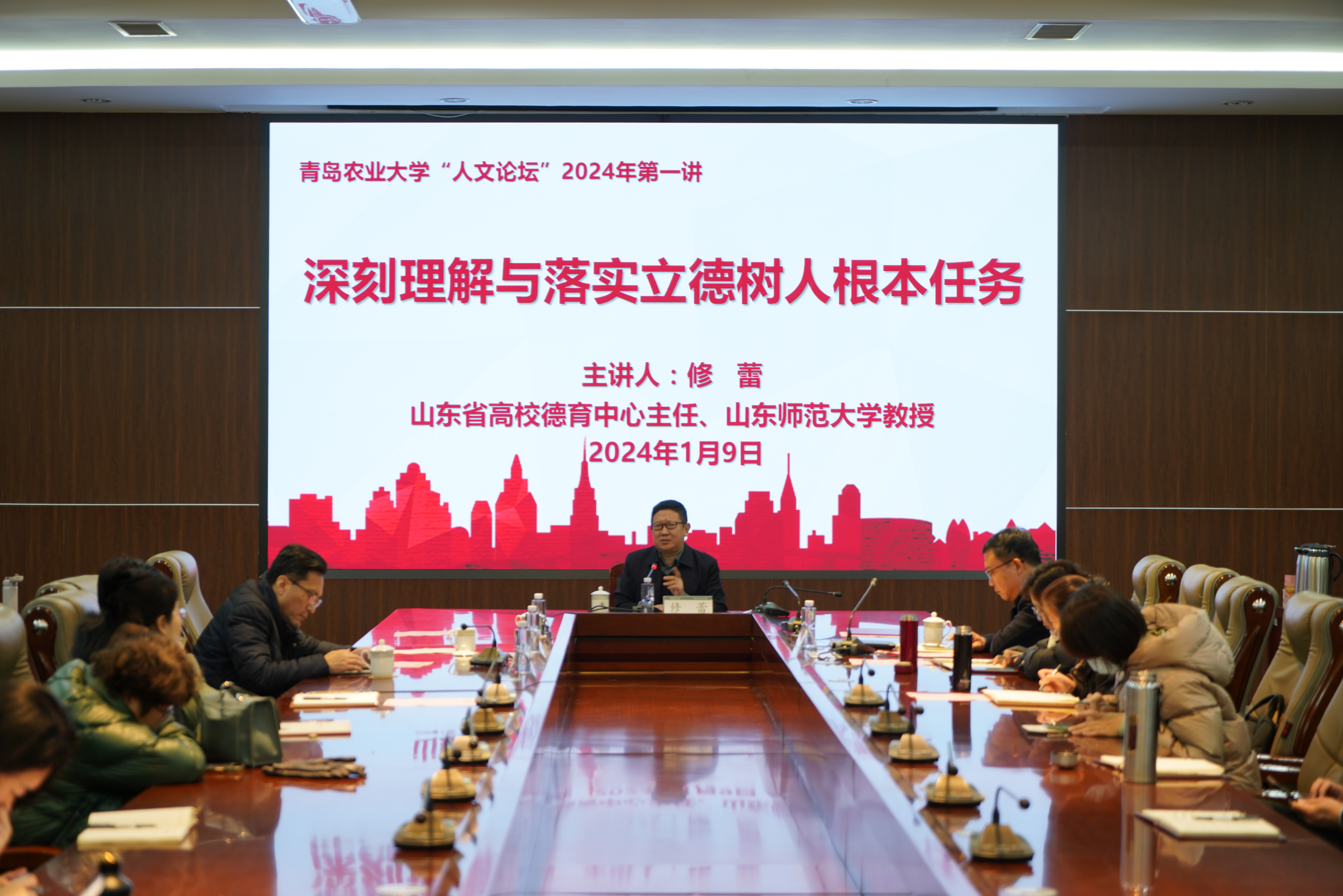 1月9日上午,太阳成集团“人文论坛”2024年第一讲开讲仪式暨太阳成集团tyc234cc党委理论学习中心组(扩大)和教职工集体学习会议举行,特邀山东省高校德育研究中心主任、山东师范大学修蕾教授作专题辅导报告。
