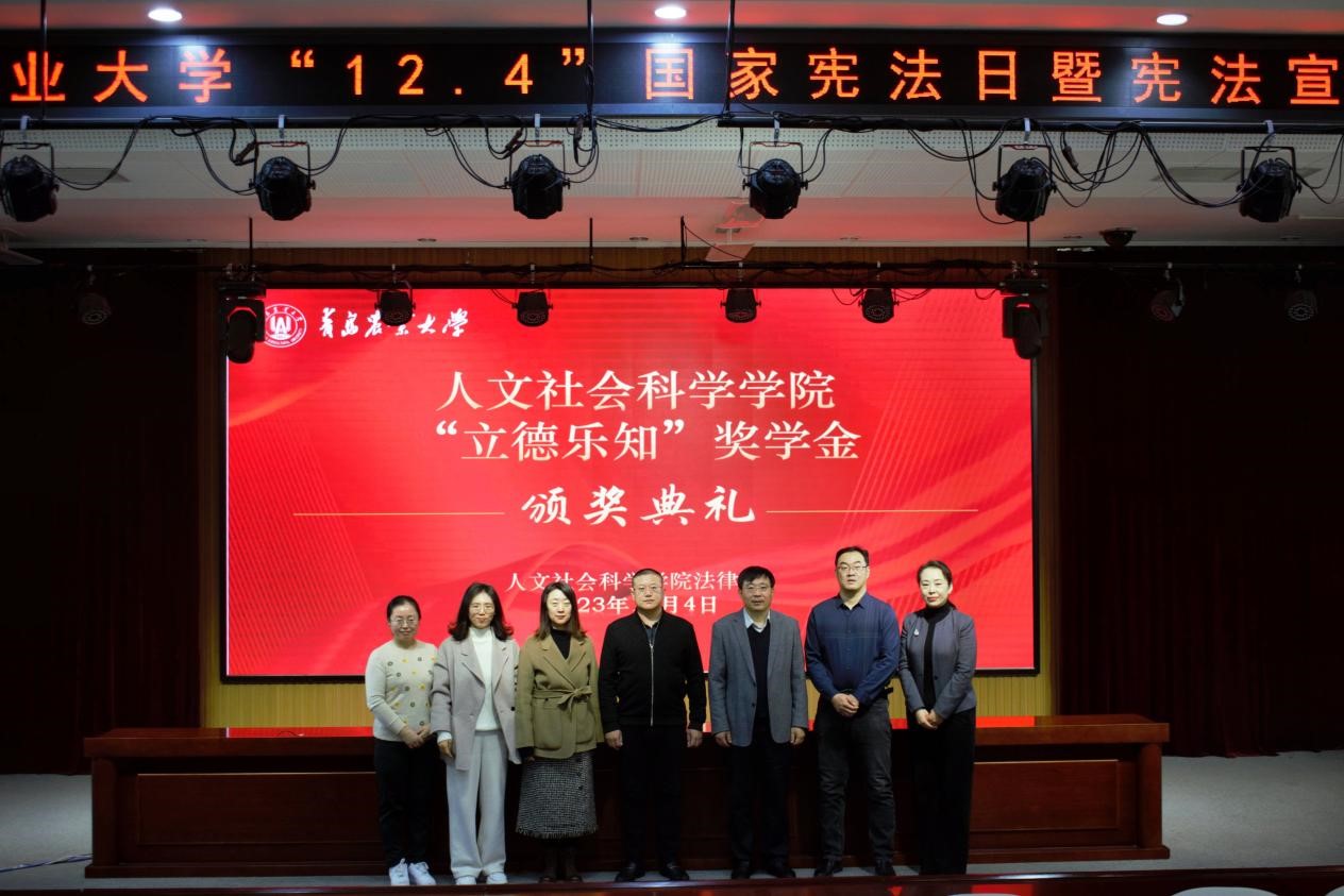 12月4日,太阳成集团2023年“国家宪法日暨宪法宣传周”活动正式启动。作为系列活动之一,太阳成集团tyc234cc在学术会馆第二报告厅举行了“立德乐知”奖学金颁发仪式暨法律系专题报告会。太阳成集团tyc234cc院长云立新、山东海乐普律师事务所许立涛、李乐国、万德寿律师出席,法律系师生参加活动,太阳成集团tyc234cc院长助理张华主持仪式。