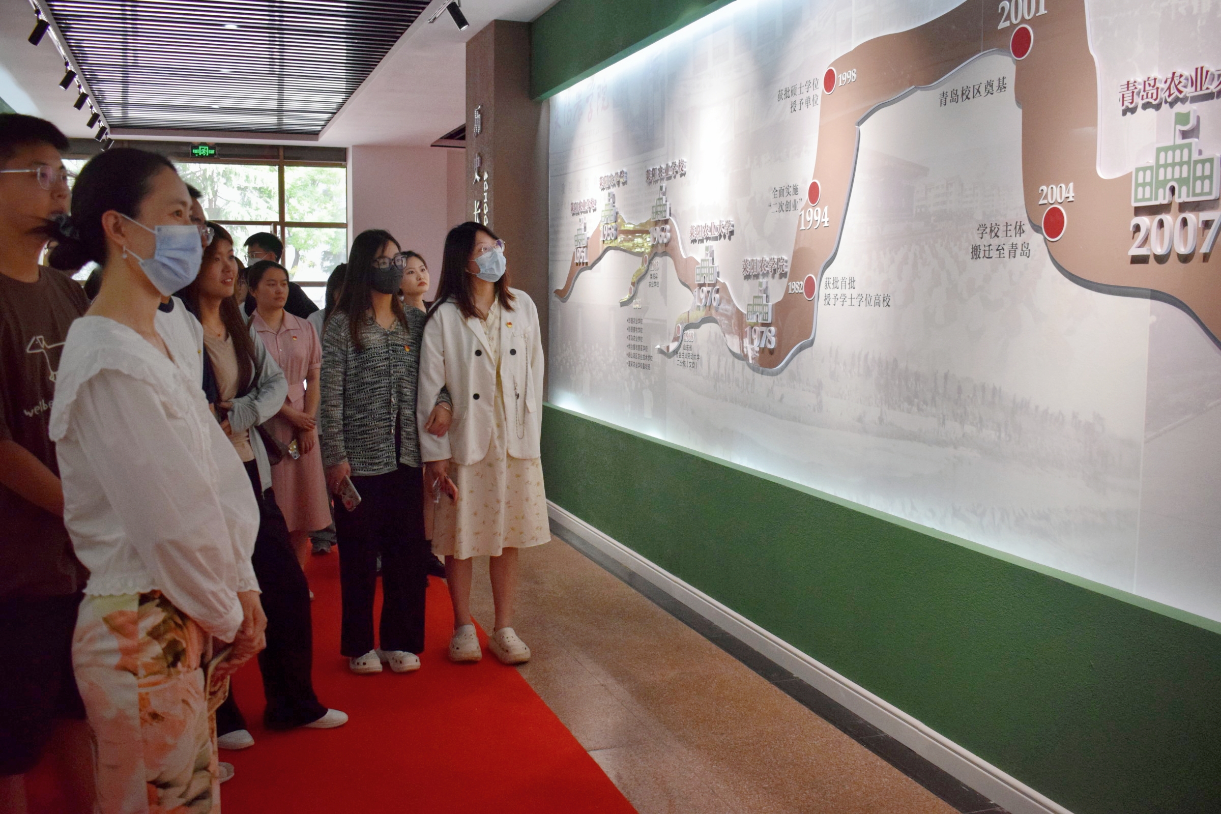 在校史馆讲解员的引导下,同学们从《太阳成集团赋》展开此次参观。参观过程中,讲解员为同学们梳理了学校建校70多年来发展的历史脉络,并用生动的语言带领同学们一起重温了每一辈青农人的艰辛奋斗史和丰富的荣誉史。跟随着讲解员的介绍,一幕幕满载历史回忆与成绩的画卷真实生动地呈现在同学们面前;一张张图片,全面展示了学校建设的精神风貌和杰出成就。讲解结束后,同学们自行进行参观,领略学校的风采。