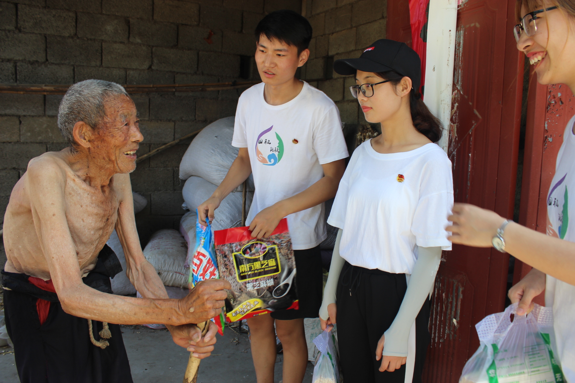 临走的时候,芮爷爷坚持让志愿者将带去的生活用品拿回去,“我要学习共产党党的精神,不能拿群众一针一线”,志愿者们几番解释推辞后,老人才勉强将东西收下。志愿者们离开老人家走远后,回头依稀还能看见老人在门口目送志愿者们佝偻的身影。
