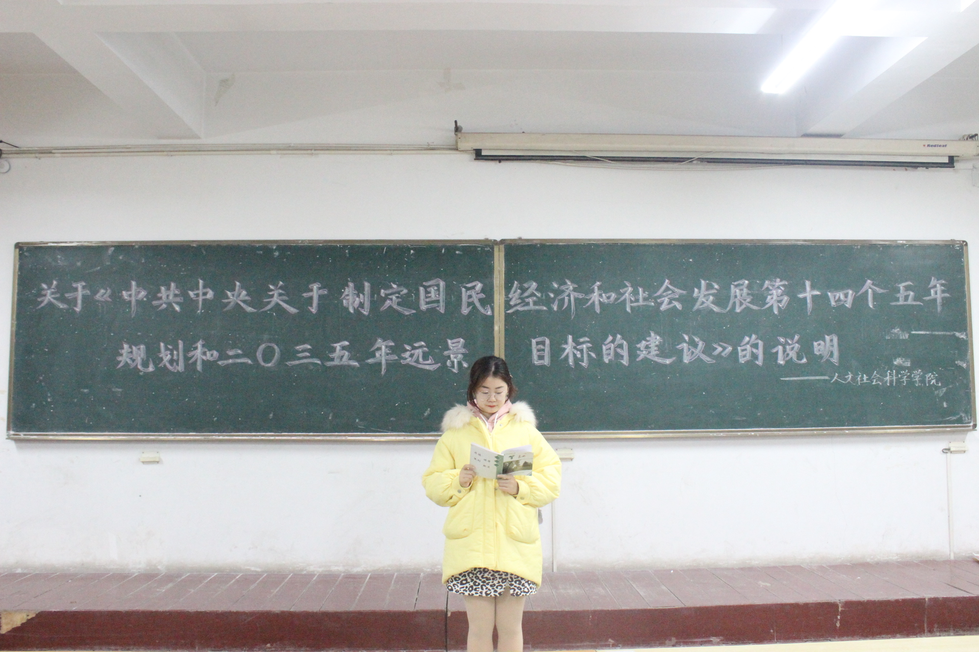 本次政治学习由各班团支书担任主讲人。秘书2001班团支书苏文杰对《中共中央关于制定国民经济和社会发展第十四个五年规划和二〇三五年远景目标的建议》进行了深入讲解,带领同学们了解了以下内容:一个新奋斗目标——全面建设社会主义现代化国家;统筹两件大事——发展和安全;三个“新”贯穿全文——新发展阶段、新发展理念、新发展格局;“四个全面”新布局——开启全面建设社会主义现代化国家新征程;五大新发展理念——指引“十四五”高质量发展;六个发展目标——勾画“十四五”发展新图景。