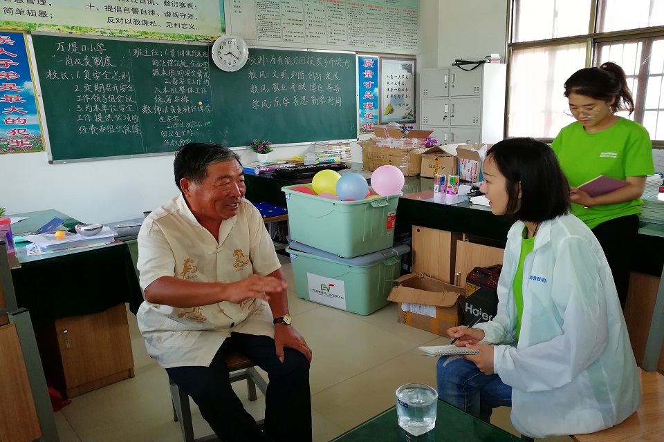 当我们向万堤口小学的校长提出想拜访几位德高望重的老教师时,校长说“有一位有四十多年教学经验的万修峰老师,他明天正好来学校”。一听说是四十多年的老教师,队员们心里充满着敬意和期盼。预定八点见面,七点钟队员们就开始准备,将会议室收拾的干干净净。
