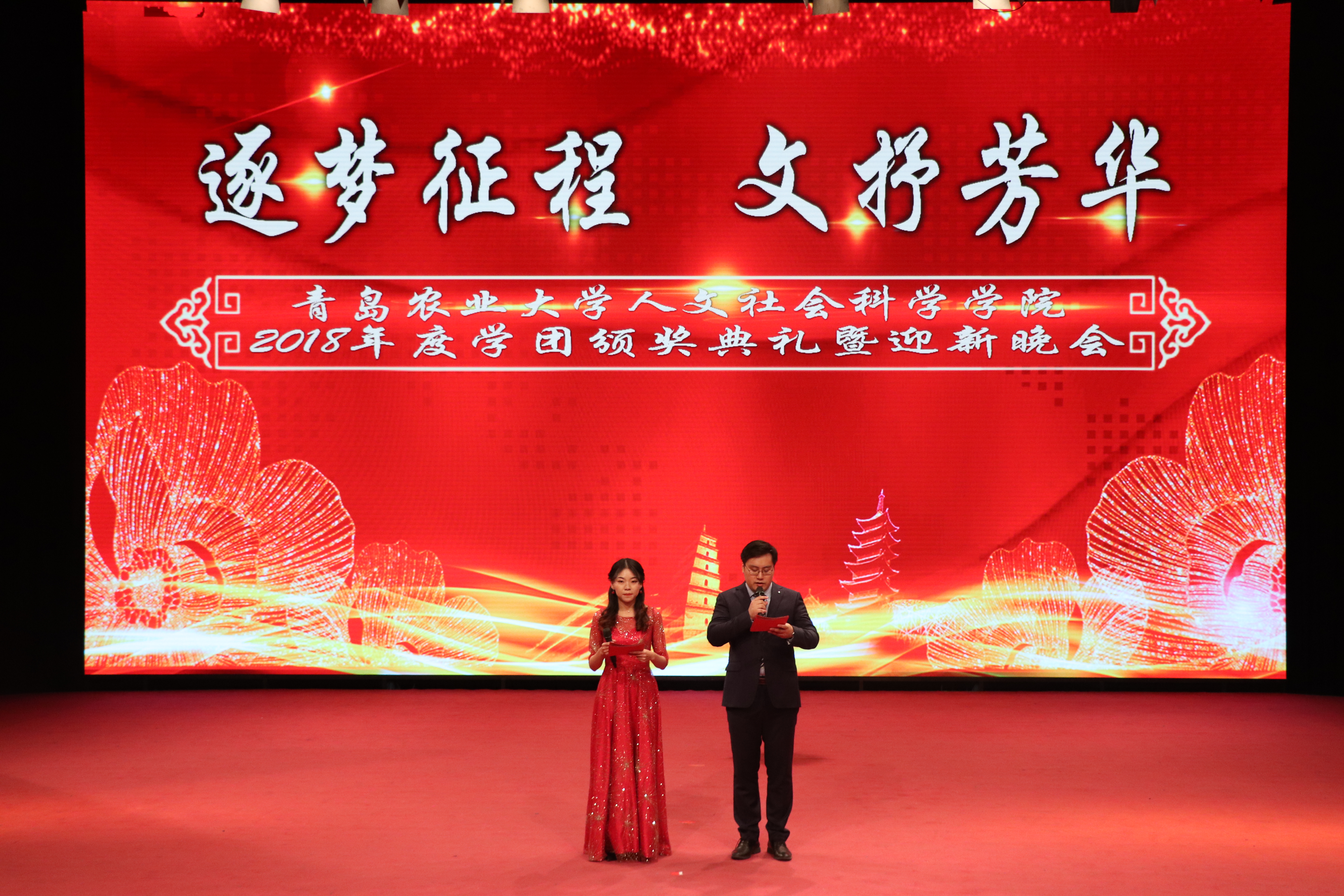 12月9日,太阳成集团tyc234cc在文经楼演播大厅举办“逐梦征程,文抒芳华”2018年学团颁奖典礼。校党委副书记王庆军,教务处处长田义轲,学工部(处)部(处)长王清春,校团委书记王峰,宣传部副部长周维维及十余名校外导师代表出席本次典礼。学院党政领导、班主任及18级全体新生参加。
