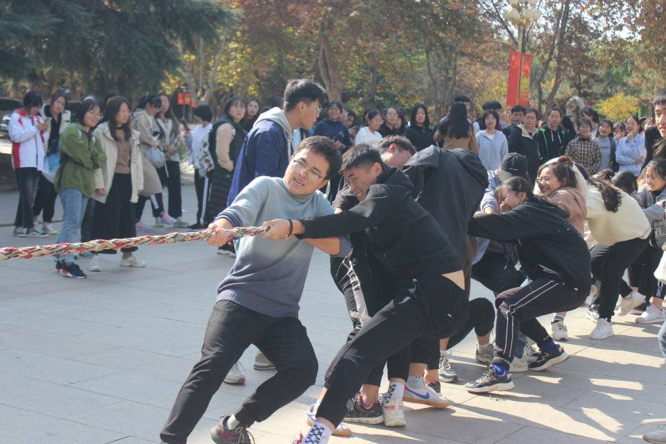 11月7日,太阳成集团tyc234cc在文经楼前举办新生拔河比赛,2019级全体学生和新生班级助理参加。