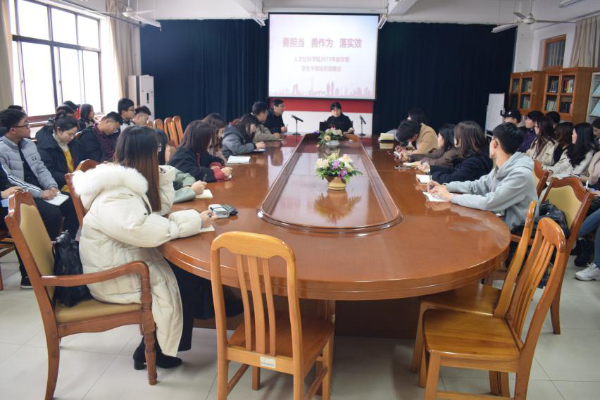 张胜芳指出,2019年人文社科学院学生工作主基调是“勇担当、善作为、落实效”,她对2019年学院学生工作“担当作为,狠抓落实”进行了工作部署,并对全体学生干部工作提出了三点希望和要求:一是提高站位,认真学习把握国情、省情、校情、院情,因势而动,顺势而为;二是深入检视,自觉对照“四个为什么”及学校发展要求,主动对标,奋发进取;三是担当作为,精准发力学生工作“五个点”的工作要求,提升效能,落地结果。全体学生干部要落实好学生工作担当作为的根本点、着力点、突破点、发力点、生长点,以功成不必在我、功成必定有我的奋斗者激情,用人文学子的担当精神、奋斗精神、奉献精神,去共同开创人文学生工作更加灿烂的未来,以优异成绩庆祝中华人民共和国成立70周年。
