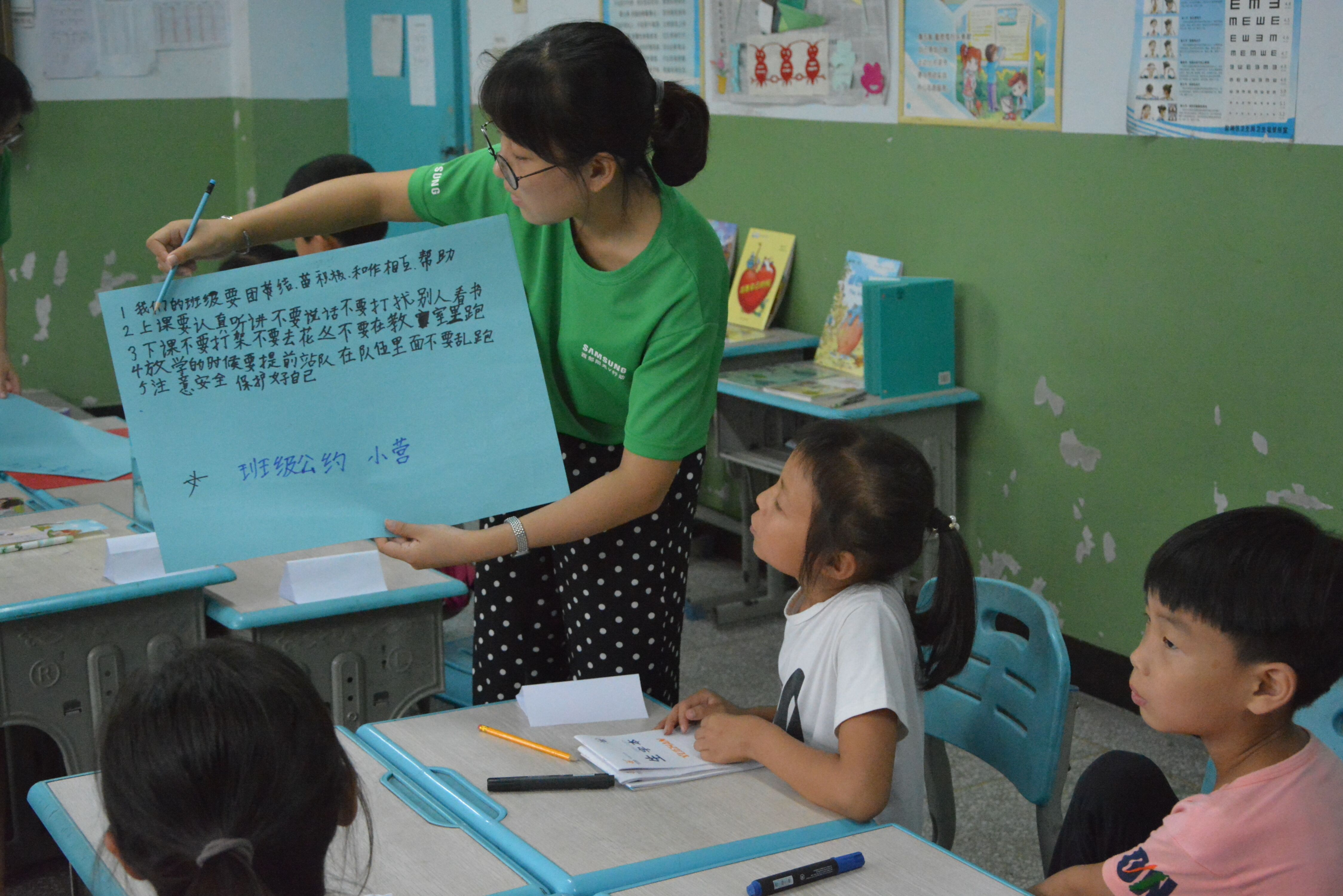 在这个过程中,孩子们表现出极为高涨的热情。之后我们了解到,在他们之前的班级中从未开展过类似于这样的班级文化建设。这个问题也反应出乡村学校缺乏文化建设这一方面,也没有较好的凝聚班级力量,提升班级氛围。任何一个集体都应该有一种属于集体的专属的文化,它是一个集体之所以被定义为一个集体的关键与标志,也是成员间强力的粘合剂。就像一个强大的国家与民族必有其引以为傲的民族精神;一个成功的企业必有其充满魅力的企业文化;同样,一个班级,必须要有一种文化来引导同学们共同前进,作为同学们默认的参加集体生活的共同准则。只有这样,一个班级才可以正常而高效地运作,才有可能聚集体之力走向优秀。因此,文化建设就是新班干应当竭全力思考的问题。班级文化建设的开展,不仅为可以为班级营造良好的文化氛围,还可以凝聚班级力量,塑造班级之魂。