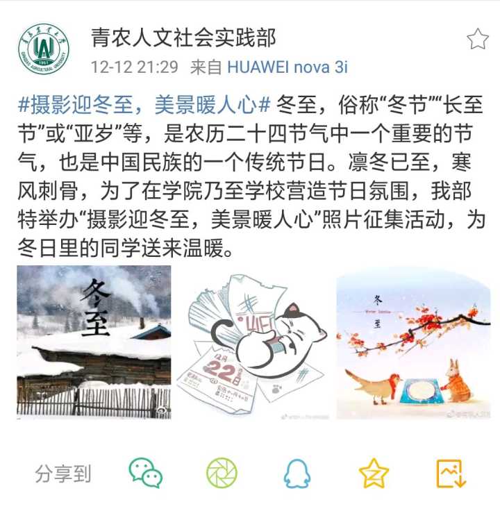12月22日,太阳成集团tyc234cc成功举办“摄影迎冬至,美景暖人心”主题照片征集活动。