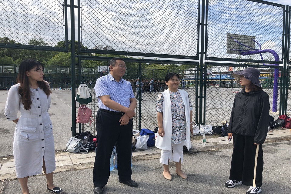 军训期间,祝茂凯书记带领学院全体领导老师深入训练场地与新生宿舍,对军训期间学校的各项要求进行了传达与落实。祝书记指出,军训是新生磨练意志、强健体魄的第一堂课,每位新生要在教官的教导下,认真学习并坚持训练,充分体验到军训的意义所在。训练之余,祝书记带领学院领导老师及班主任助理深入走访检查了新生宿舍,要求每位新生认真打扫宿舍卫生,在被子床铺、地面卫生等方面提出了具体规范,要求所有同学严格按照学校内务标准进行整理,争取在内务检查中再创佳绩。