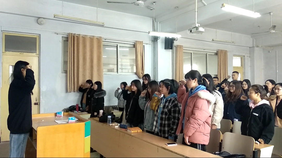 为了贯彻落实团日活动要求,唤起大家入团时的激情与信念,各团支部组织团员集体宣誓,重温入团誓词。汉语言文学1701班全体起立,庄严而又神圣,“我志愿加入中国共产主义青年团”的誓词久久在教室里回荡,坚定慷慨的宣誓唤起了全体团员对于民族和国家的自豪感和荣誉感。