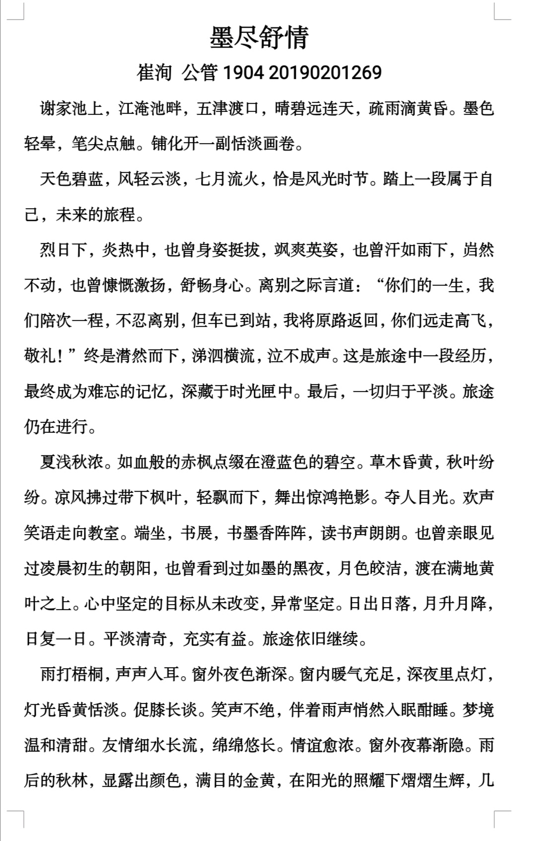 活动要求同学们以征文形式表达自己对大学生活感悟,得到了同学们的积极反响,纷纷上交自己的作品。公共事业管理专业1904班崔洵同学在文章中写到:“天色碧蓝,风轻云淡,七月流火,恰是风光时节。踏上一段属于自己,未来的旅程。”汉语言文学专业1902班宋天雨同学写到:“星光不问赶路人,时光不负有心人。我希望我们都可以抵住回家的诱惑、手机的欢愉、宿舍的温床,坚持到底,在期末考试中取得理想的成绩。”真挚的话语将大一同学这学期的所念所获以及对未来的所思所想都凝聚于笔端,述诸在纸下,写出了自己经历的感动,喜悦,彷徨……本次活动共有30余名同学参加。