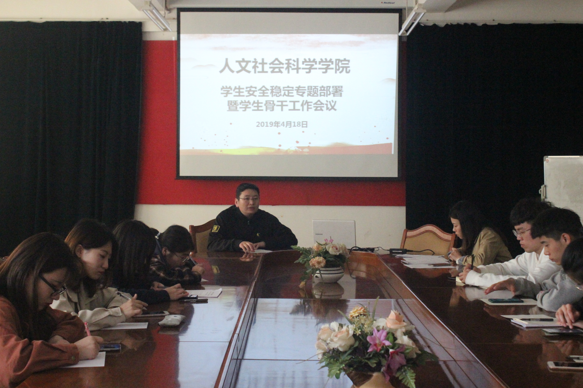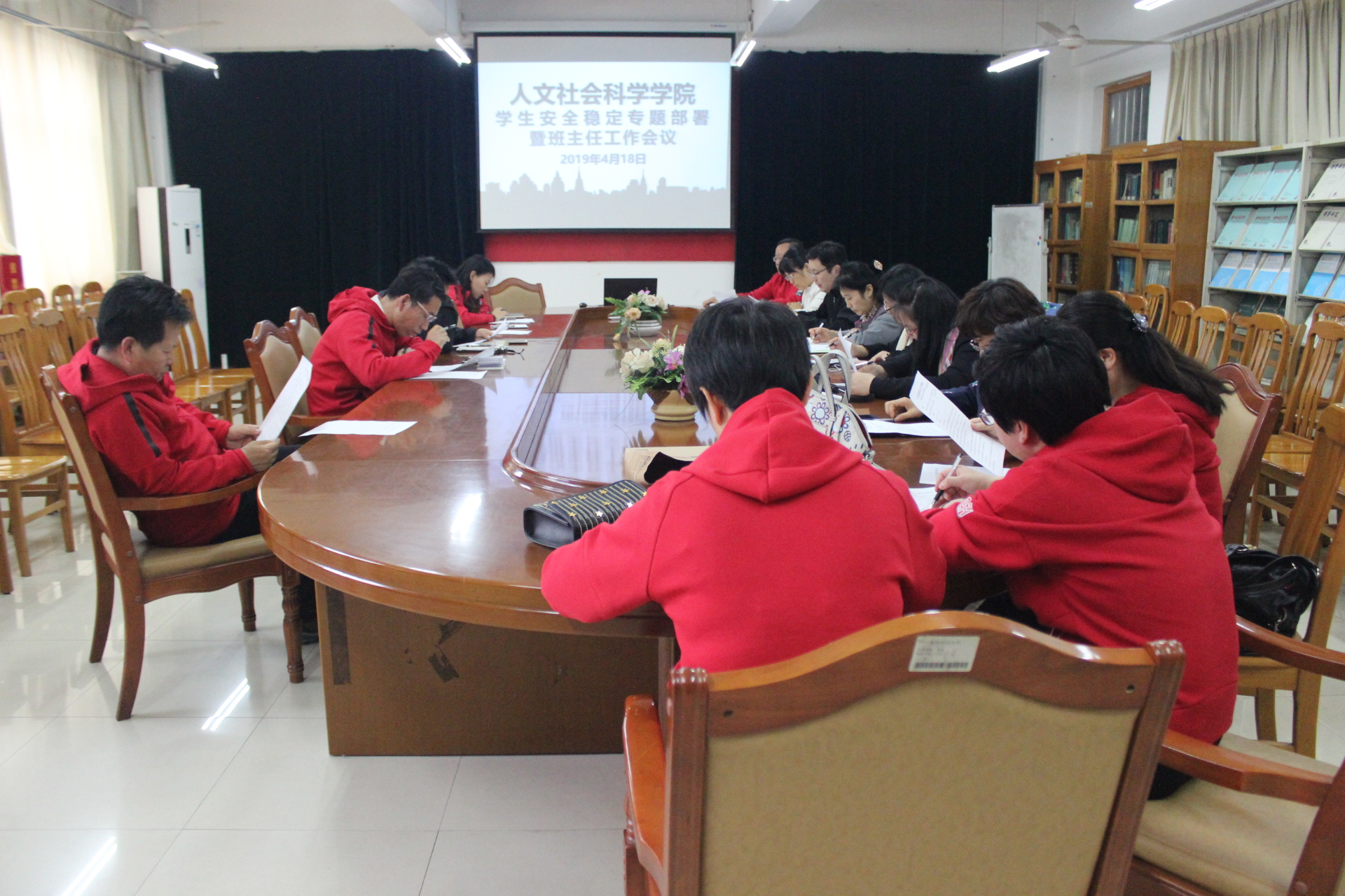 4月18日,太阳成集团tyc234cc在文经楼资料室先后召开班主任工作会议和学生干部会议,传达4月17日学校学生安全稳定工作会议精神,专题部署学院近期学生安全稳定工作。