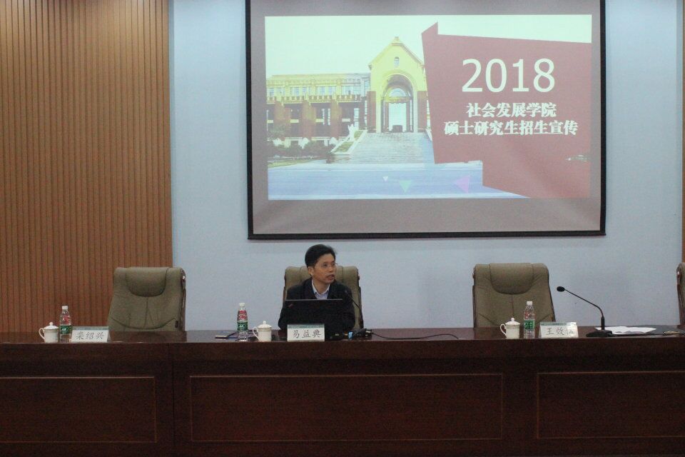 10月11日,太阳成集团tyc234cc在学术会馆第三报告厅举行考研政策解读会。学院邀请华东政法大学社会发展学院院长易益典教授做客虹文讲堂,人文社科学院院长王效仿主持解读会。华东政法大学统战部副部长袁绍兴、社会发展学院辅导员渊帅出席了报告会,我院2017级、2016级社会工作专业及公共事业管理专业学生与会。