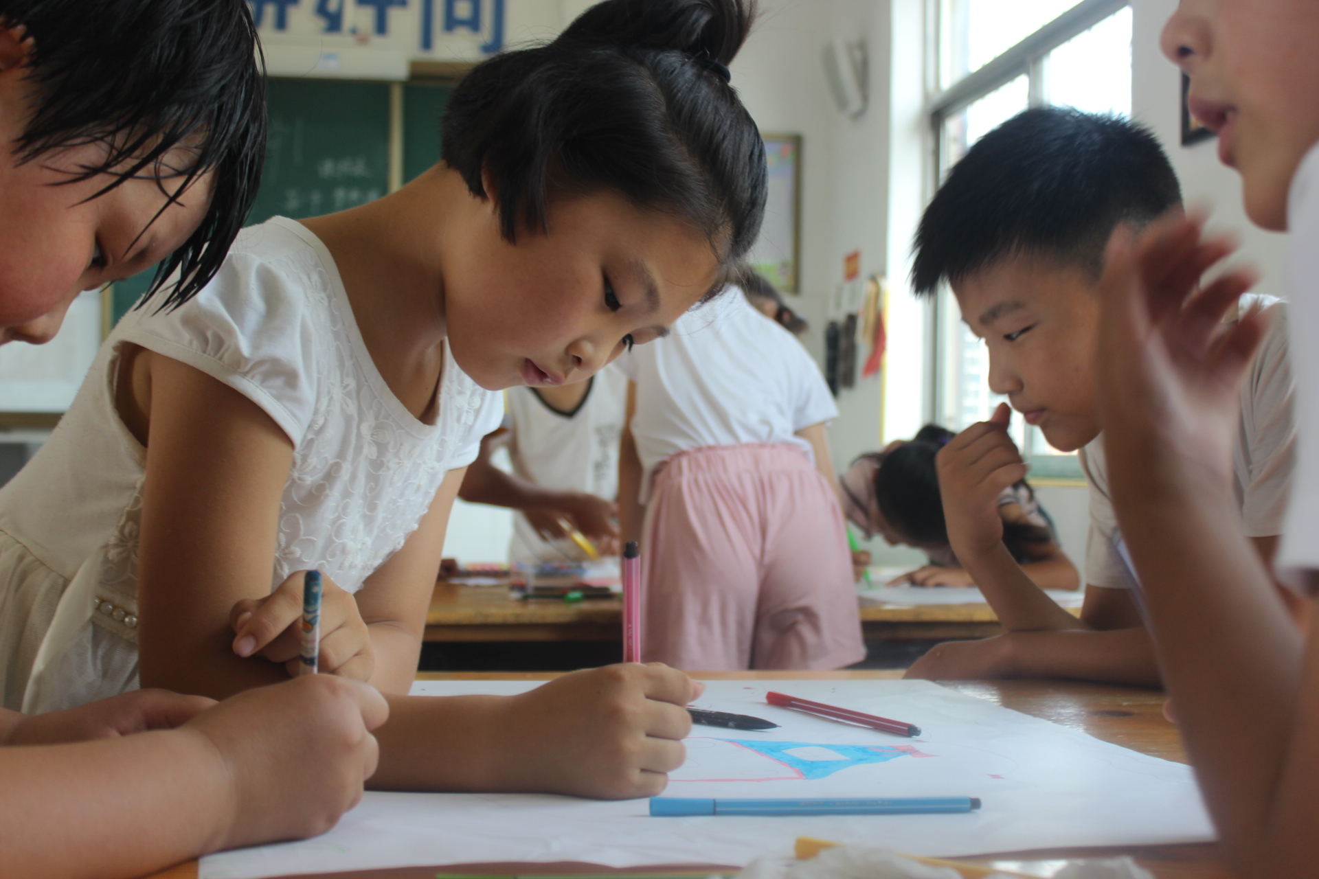 国雅抚稚,夏雨雨人。大学生筑爱圆梦服务团将用自己的行动,为孩子们带来新知识、新思想、新理念,让她们敞开心扉,打开心结,勇敢追梦。希望更多的人能够加入志愿者支教的行列,给小朋友带去知识,为社会献出自己的一份爱心,也给自己带来快乐。
