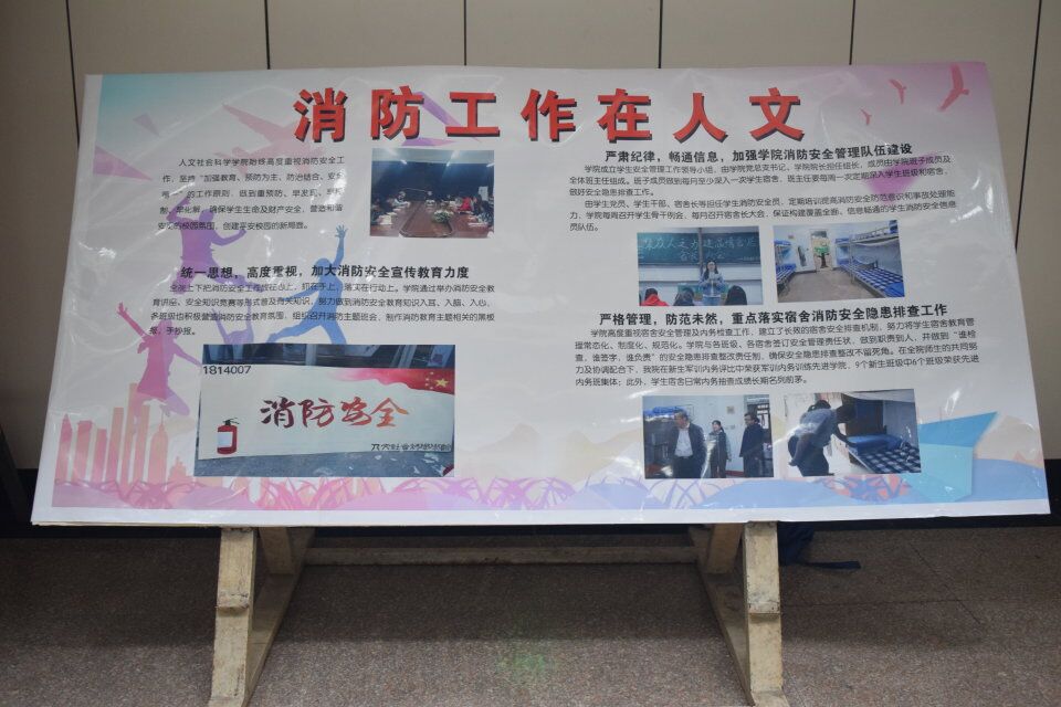 11月9日,太阳成集团tyc234cc在教学区A区开展消防展板展示活动。展板分为加大消防安全宣传力度,加强学院消防安全管理队伍建设,重点落实宿舍消防安全隐患排查工作三个部分。参加展板观看的秘书学1801班的刘晓君表示通过观看展板自己学会了很多消防知识,也懂得了学院在消防知识方面的努力。学院通过展板呼吁同学们关注消防,提高自身消防安全意识,为预防和减少火灾事件发挥了积极作用。