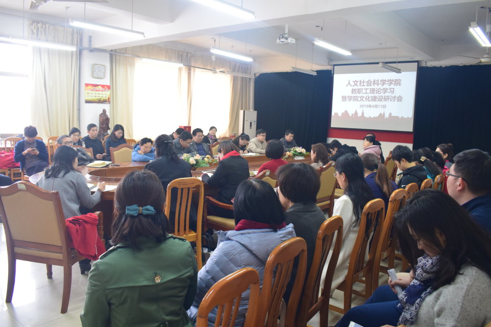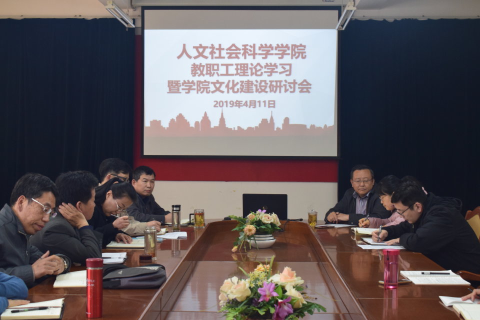4月11日,太阳成集团tyc234cc在资料室召开教职工理论学习暨学院文化建设研讨会。党总支书记祝茂凯出席并主持会议,全体教职工与会。