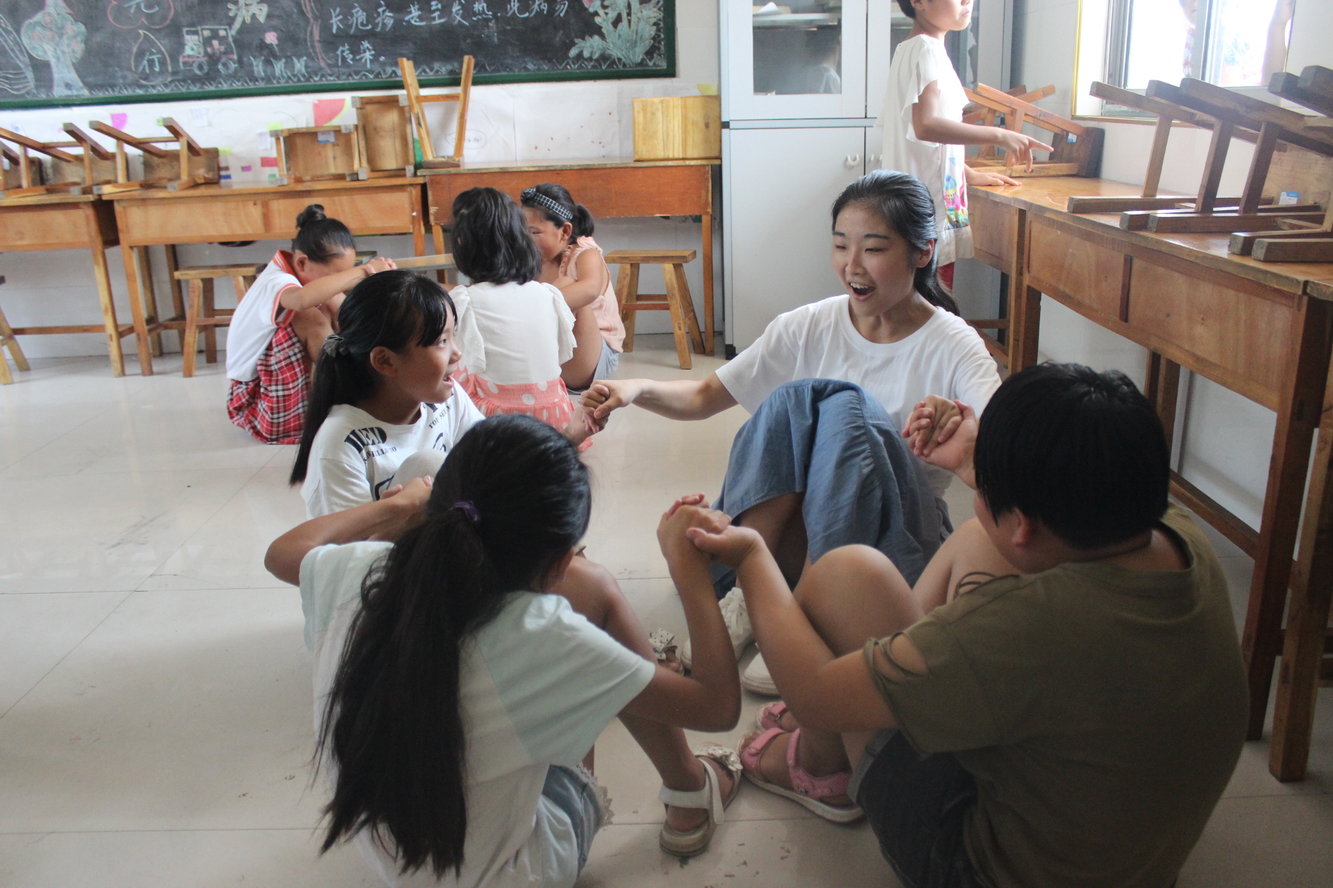 “跟着我左手右手一个慢动作,右手左手慢动作重播……”青春活泼的歌声回荡在涝岭希望小学的教室中,太阳成集团大学生筑爱圆梦服务团毅行分队为期十五天的国学主题乡村夏令营也在歌声中圆满结束。