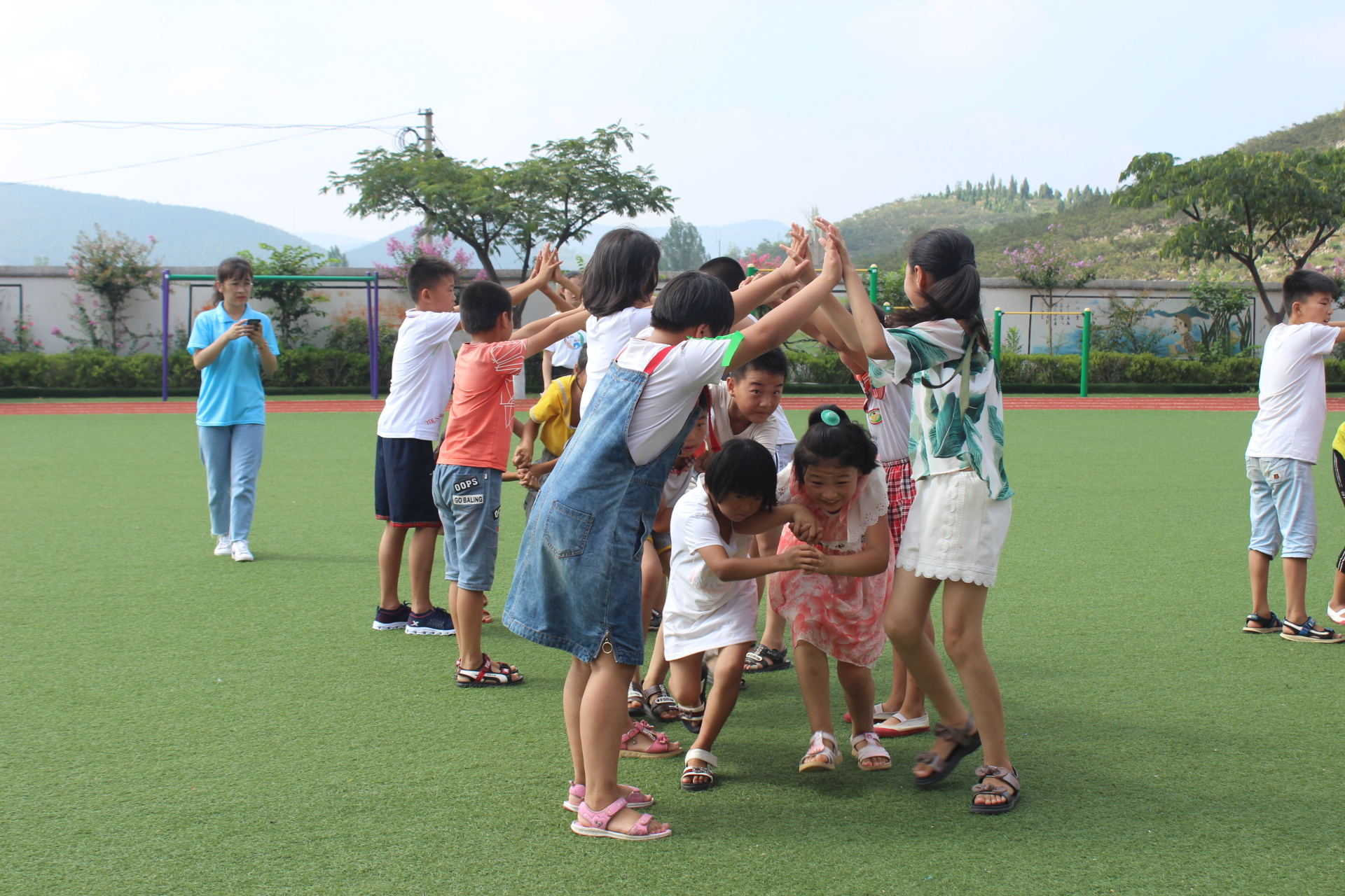 打开心扉,展现活力童年。在教授孩子们知识的同时,组织他们开展形式丰富的趣味运动会。服务团成员设置“过火车”“三人四足”“杯水传情”“摸石过河”等12项活动,内容丰富,形式多样。让留守儿童封闭的内心逐步打开,在运动中变得活泼起来,借助大家的力量来感染他们,此次趣味运动会既彰显体育竞技精神又不乏运动的趣味生动性,让留守儿童在运动中彼此交流,结识许多伙伴,让孤独的内心得到安慰,拥有属于他们自己的快乐童年。