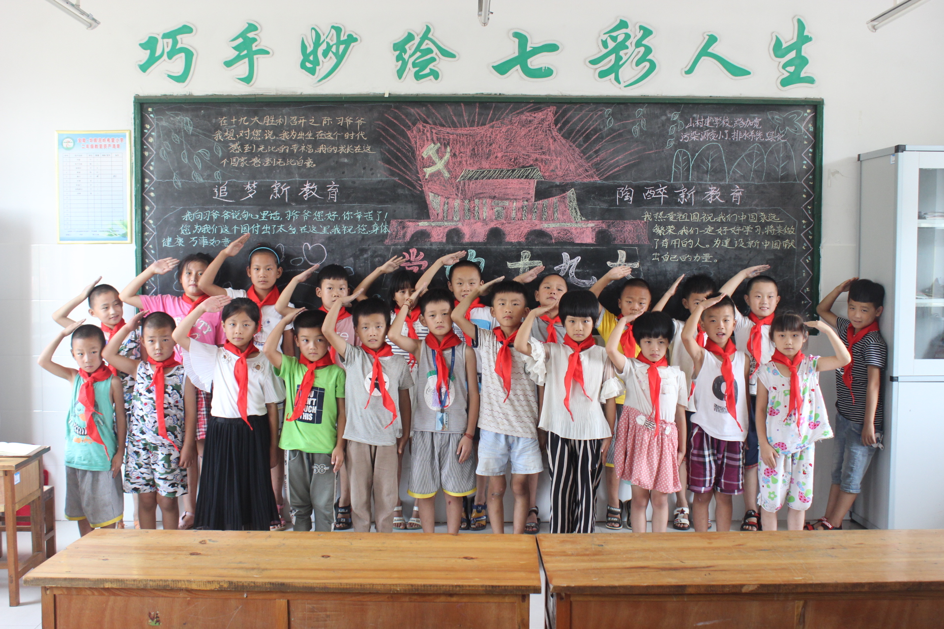“我们是共产主义接班人,继承革命的先辈的光荣传统……”爱国教育课堂上,志愿者们以孩子们少先队员的身份为切入点,带领孩子们领略红色文化,通过教授孩子们认识红领巾以及如何正确佩戴红领巾,真正使每个孩子接受红色文化的熏陶,让红色文化与爱国信念在心中扎根。