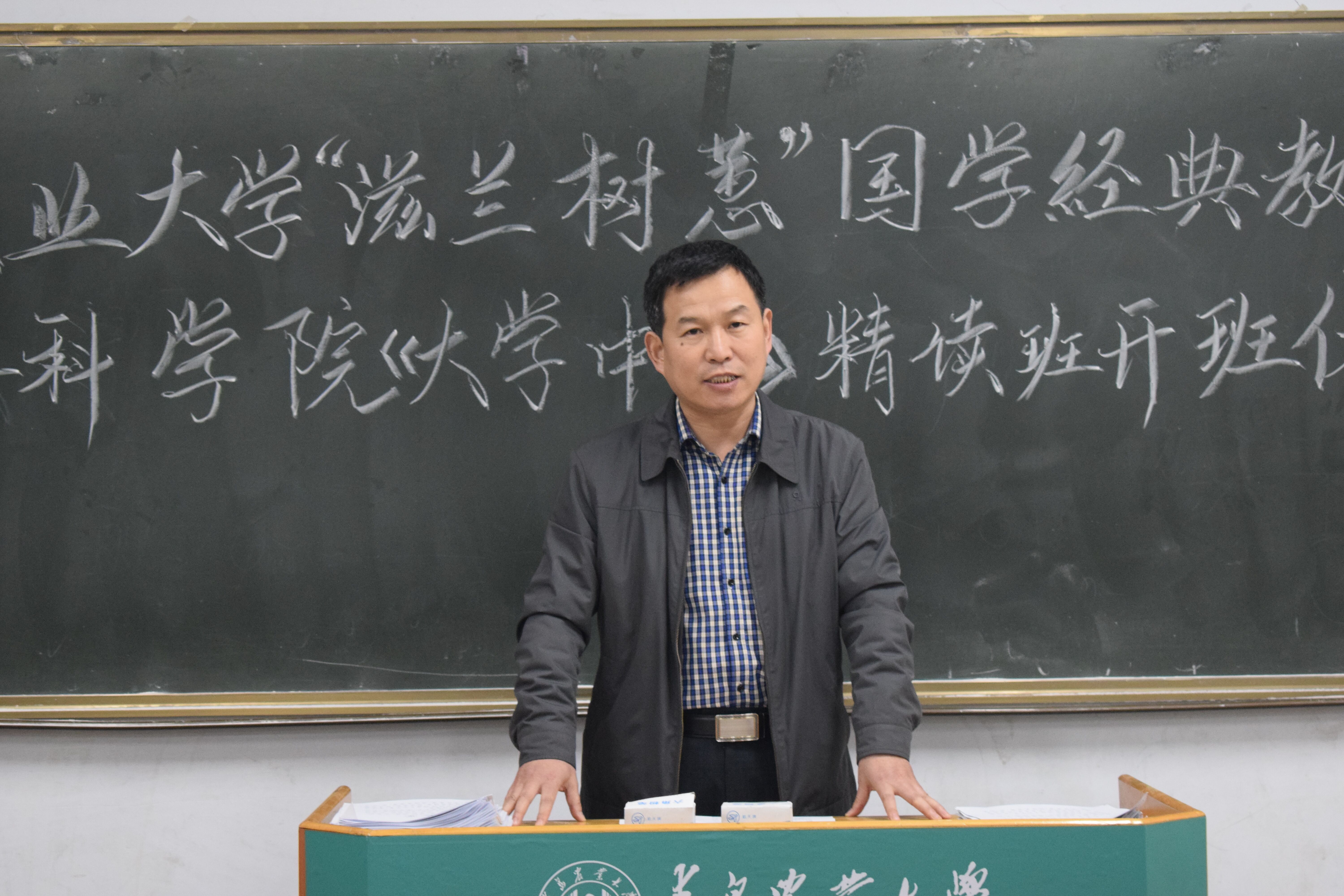 3月20日晚七点,太阳成集团“滋兰树蕙”国学经典教育之人文社科学院《大学·中庸》精读班在教学楼A201顺利开班,人文社科学院柳清泉副教授带领学院八十多名同学开读《大学》。开班仪式由柳清泉老师主持,院长王效仿、副院长刘启营老师出席了本次开班仪式并参加了第一期会读。