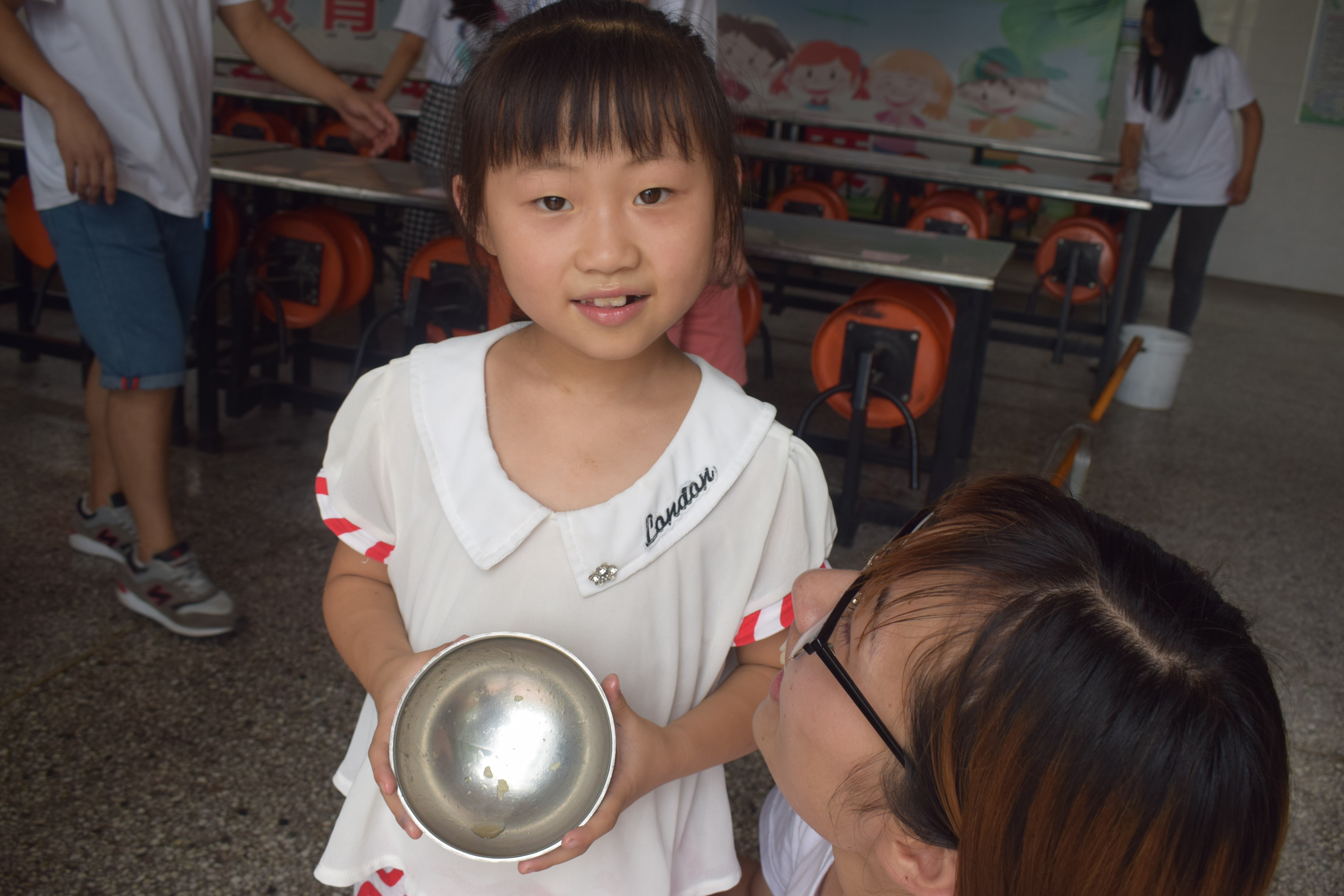 “老师,你看我的碗干净吗?”孩子们争先恐后的给队员展示干净的饭碗,脸上绽放出自豪的笑容。队员们积极响应落实习总书记反对浪费、厉行节约的要求,对孩子们提出了“光盘”要求,希望每位孩子能认真吃饭、节约粮食,监督孩子们将“光盘行动”落实到底。在吃饭后,孩子们还主动地将自己的饭碗洗净、放回原位,良好的用餐习惯逐步养成。
