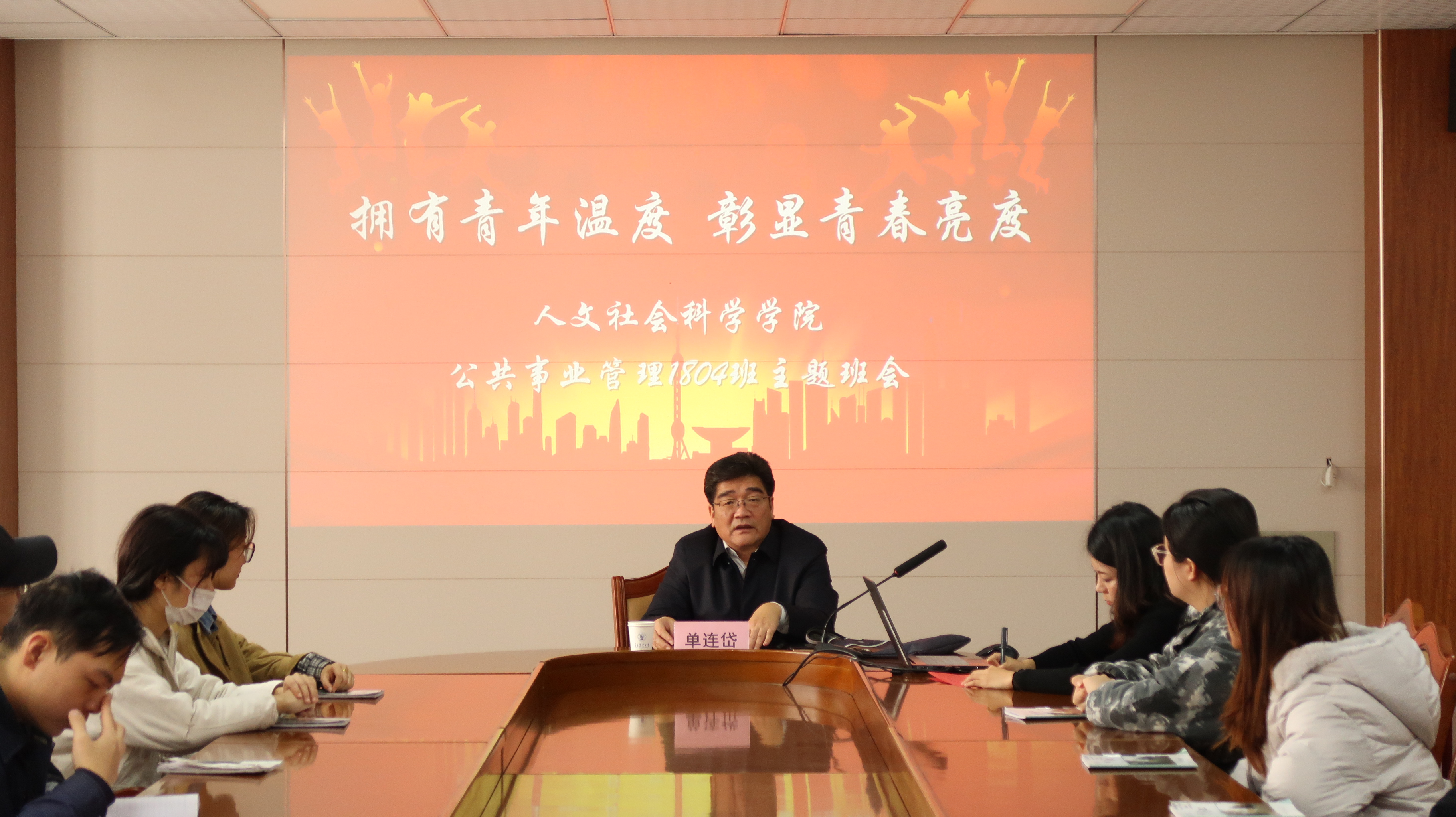 11月26日上午,人文社科学院公管2018级4班开展 “拥有青年温度,彰显青春亮度”主题班会。校党委副书记单连岱出席。