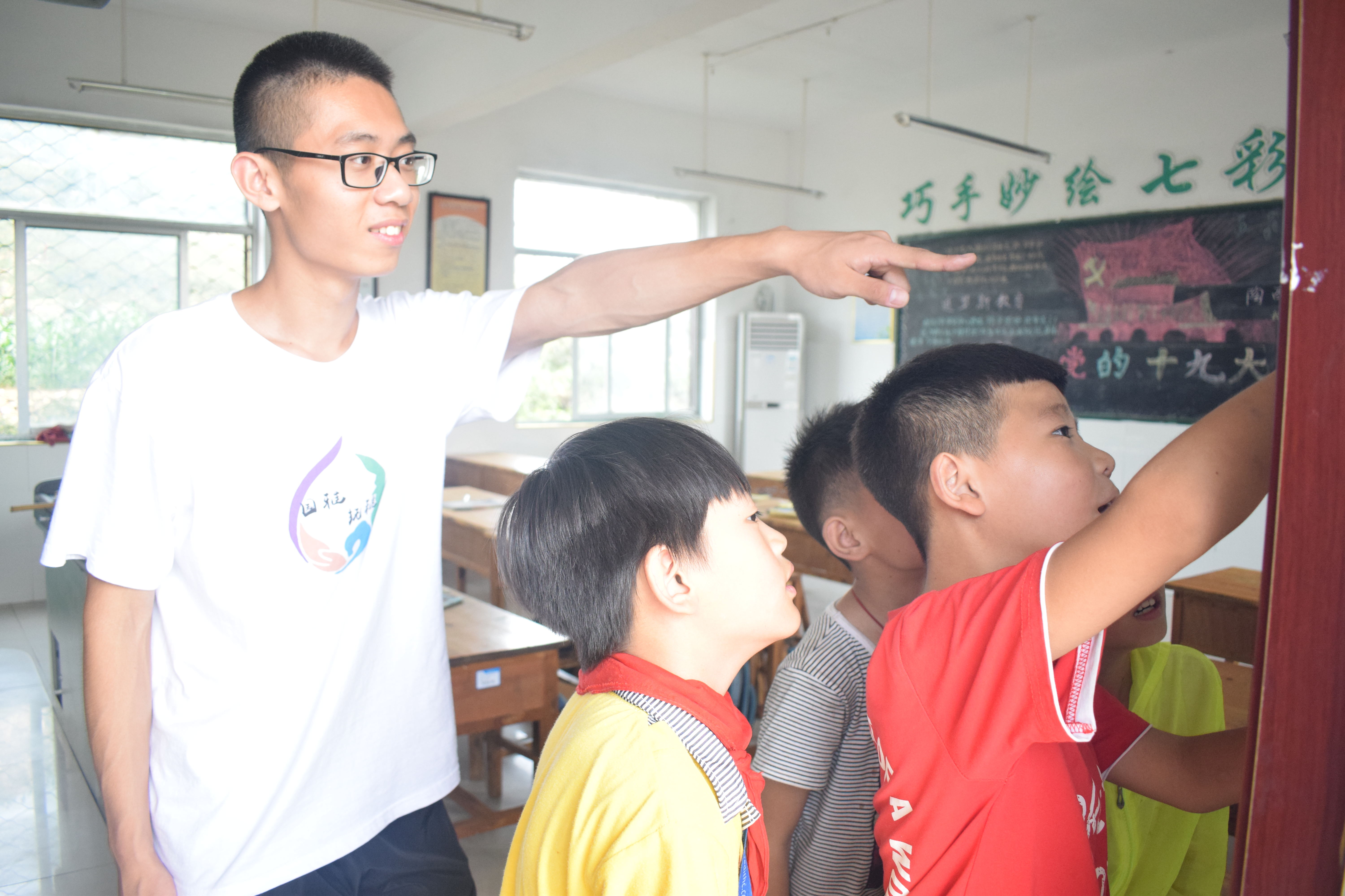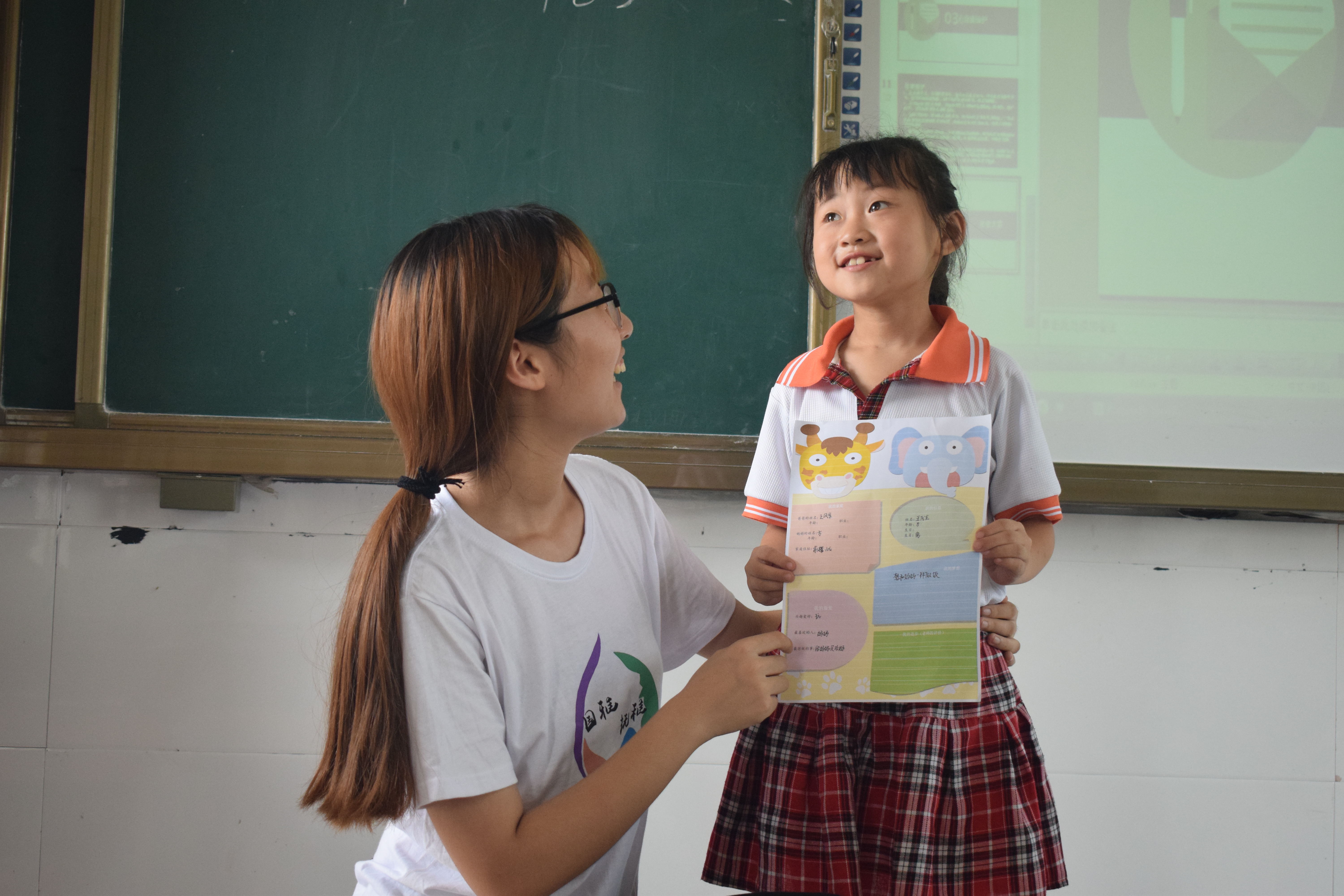 轻雾朦胧的早晨,天还蒙蒙亮,实践队队员已早早地在教室外等候着孩子们的到来。“慢点,慢点,等等我……”孩子们追赶着跑进了校园。怀着再次见到老师们的激动与好奇,孩子们比平时更早的来到校园。实践队队员依据孩子年龄将孩子们划分为大、中、小三个班级,将孩子们依次带入相应班级,与班主任签订班级契约。