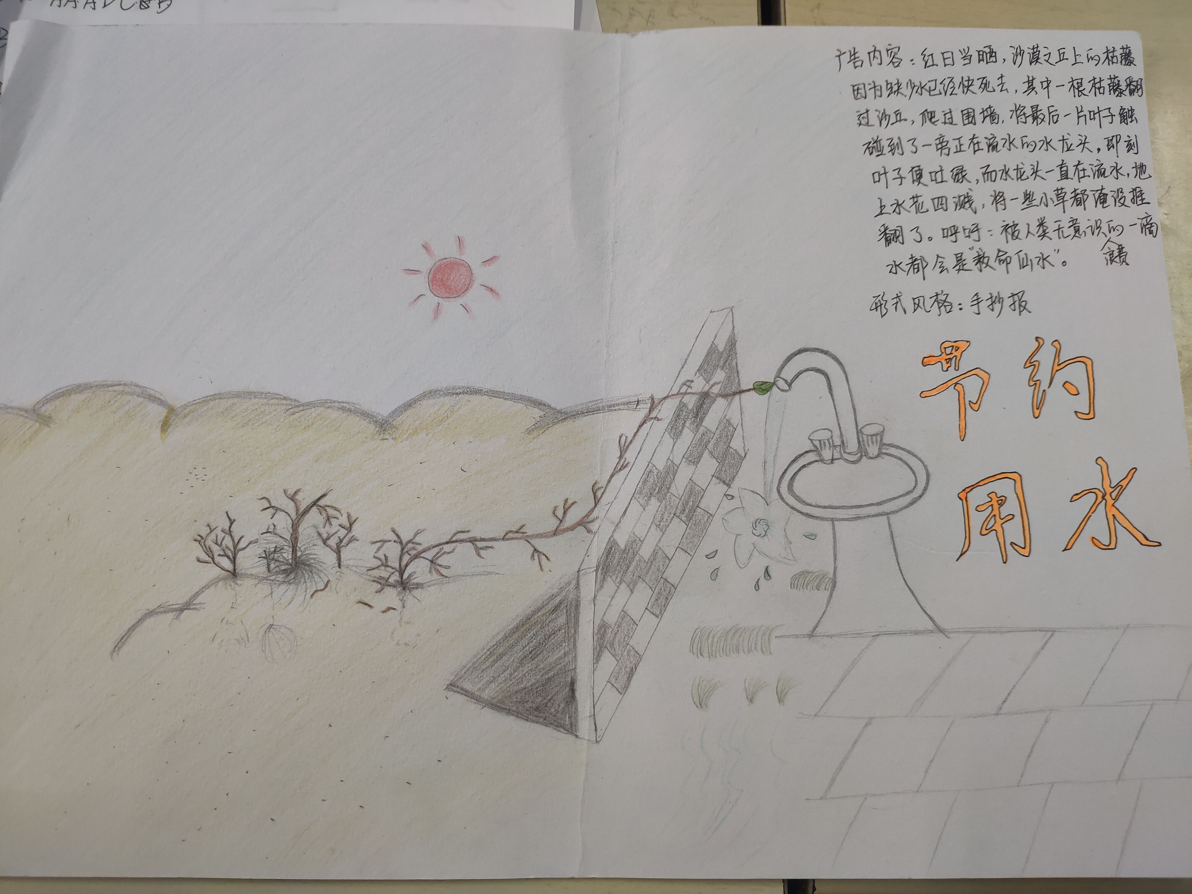 此次公益广告征集活动给同学们的校园生活增添了几分乐趣,加强了同学们对水资源的认识,增强了同学们保护水资源的责任感、使命感,有利于创造和谐的校园氛围。